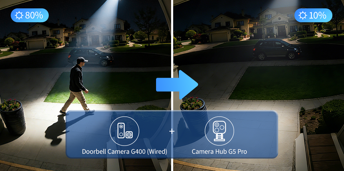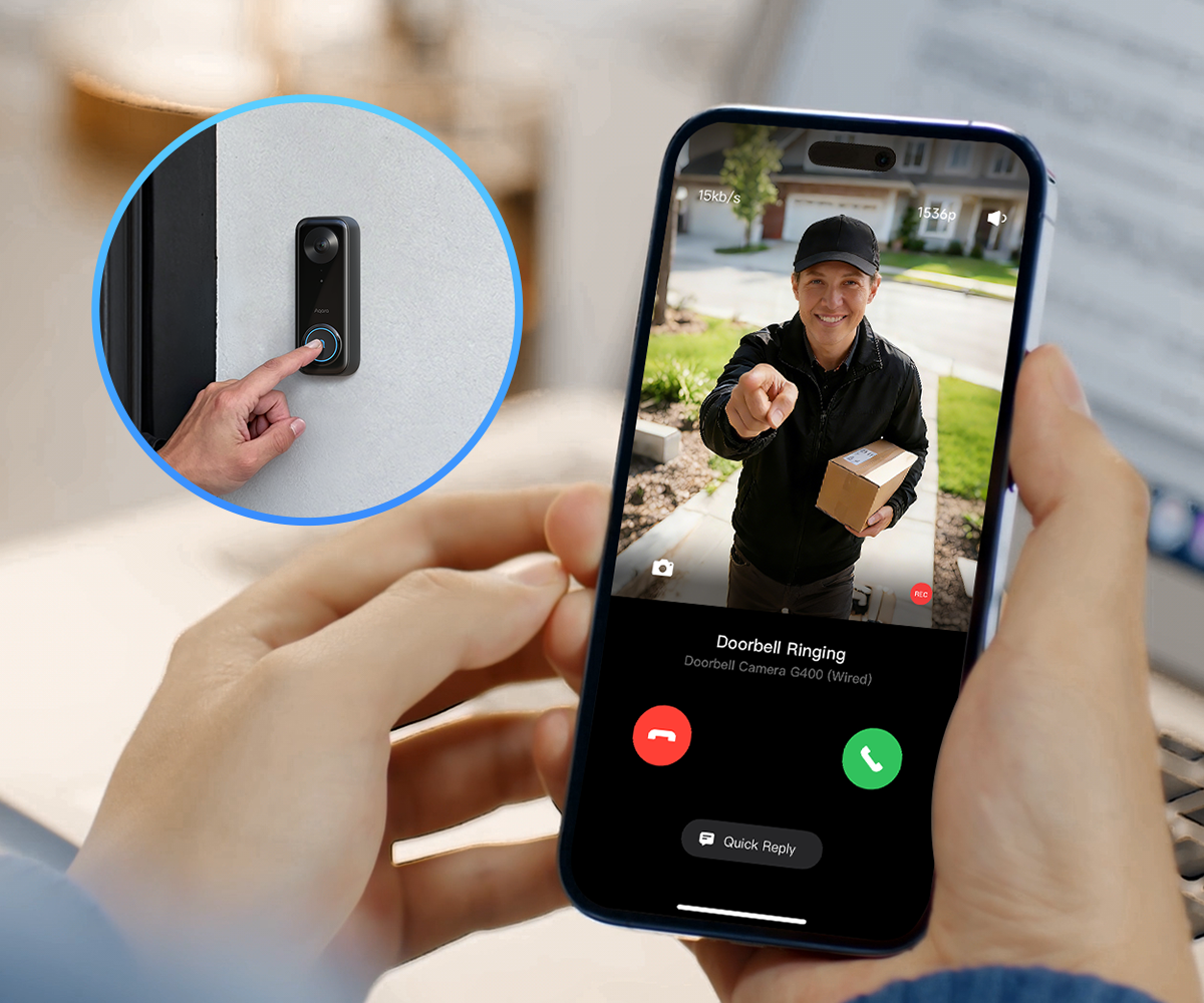 2K HD 165° Head-to-Toe Vision: See everything from packages at your feet to faces at the door. Featuring 2K HD resolution and a 165° ultra-wide field of view with a 3:4 aspect ratio, the G400 doorbell camera provides a vertical perspective that traditional 16:9 cameras miss. Equipped with nearly invisible 940nm infrared LEDs, this doorbell captures bright, high-definition video in total darkness, monitoring discreetly without alerting intruders or disturbing neighbors. *Note: When connected to Apple HomeKit, the resolution is limited to 1200p. This limitation also applies to Aqara Home when both platforms are used simultaneously.