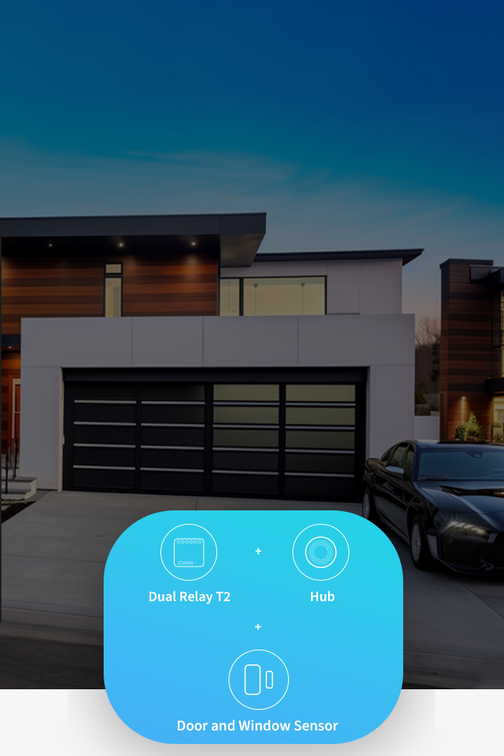 Thanks to the dry-contact mode, the Relay T2 can be used to make your existing garage door smart*