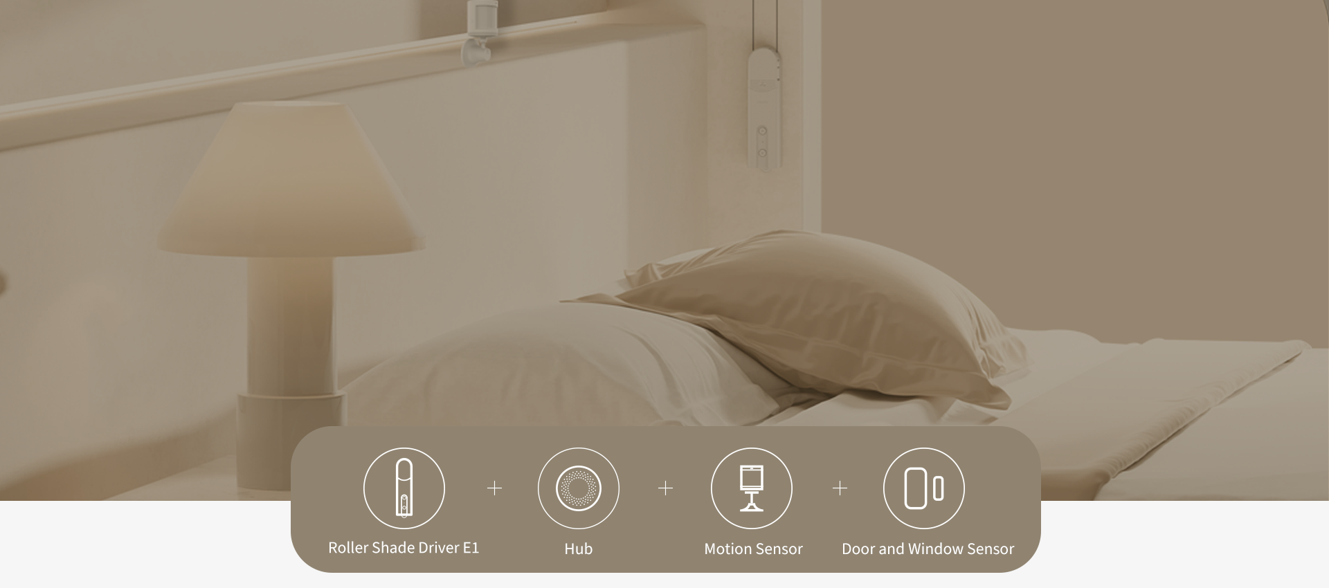 El Sensor de Puerta y Ventana detectará cuando llegues a casa y el Sensor de Movimiento ubicado en la parte superior de tu cama detectará cuando te vayas a la cama. Ambos pueden configurarse para activar el Controlador de Persiana Enrollable E1, cerrando automáticamente tus persianas enrollables.