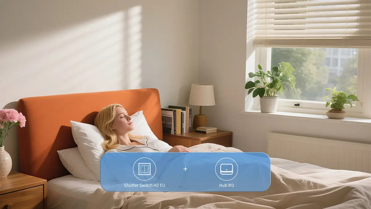 L'interruttore dell'otturatore offre un controllo flessibile: i pulsanti di sinistra gestiscono le funzioni base di apertura/chiusura/pausa, mentre i pulsanti di destra possono attivare scene relative all'otturatore o integrarsi con altri dispositivi della tua smart home.