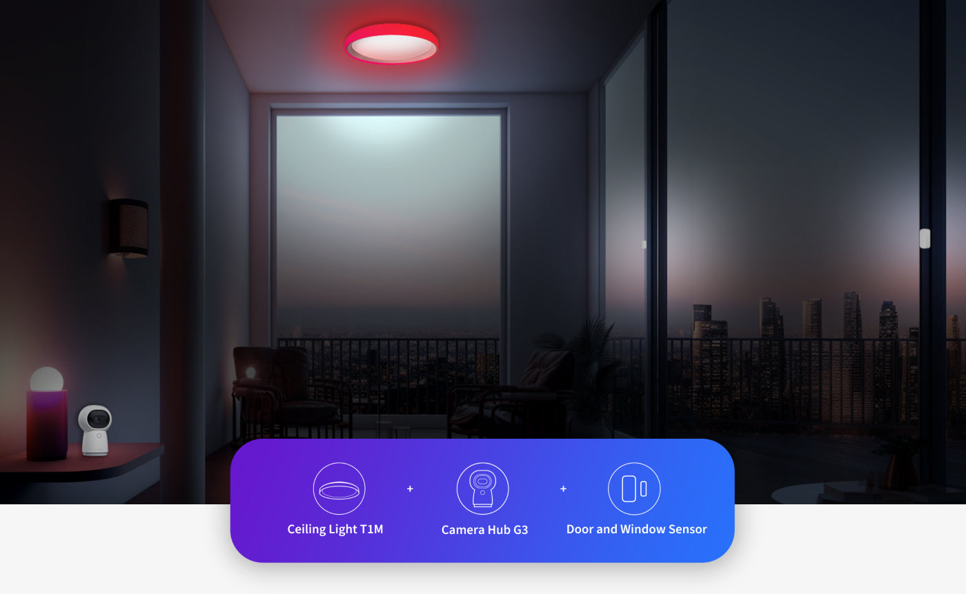 [RGB+IC Status Light Ring & Gradient Effects] The Ceiling Light T1M offers an extensive array of lighting options, catering to various usage scenarios and preferences. With the integrated RGB+IC, the side light of the T1M creates stunning gradient effects, which adds a customized ambiance with vivid color transitions to your room. Additionally, the side light can also be used with other Aqara devices and act as a status indicator for events such as doorbell rings and security disarming.