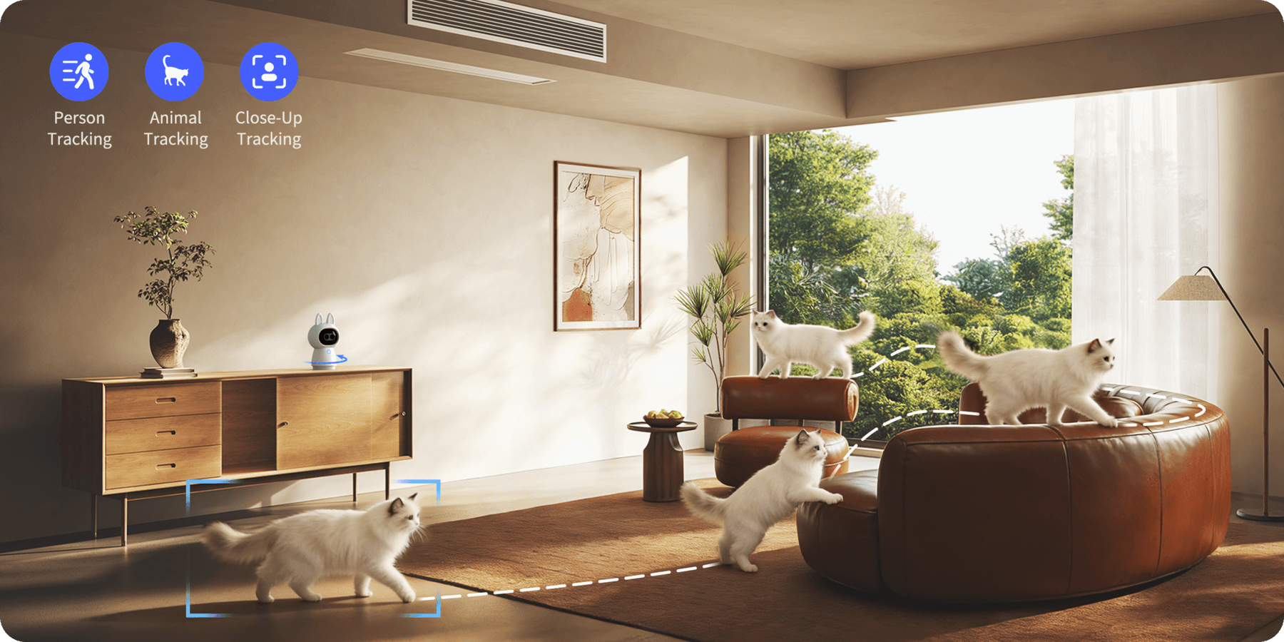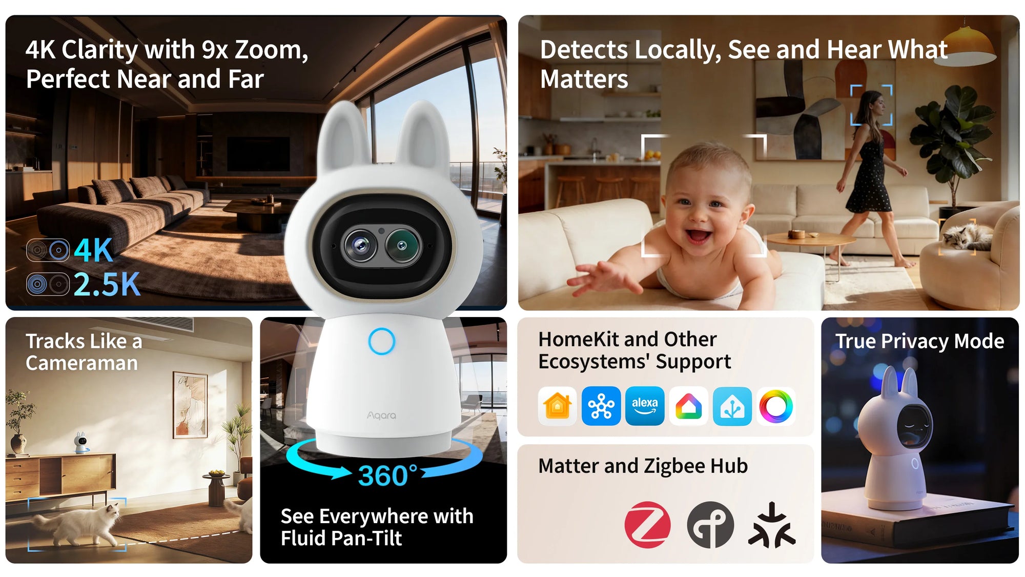 AI Auto & Close-Up Tracking: The AI auto-tracking feature intelligently identifies and follows the movement of people or pets, keeping them framed at the center of the view. With close-up tracking, it goes beyong simply follow a subject but tracks with close-up capture in an appropriate zoom level. Its pan/tilt speed automatically slows down when zooming in, ensuring stable and precise framing of distant close-ups while completely eliminating motion blur. Note: This feature is only configurable in the Aqara Home app.