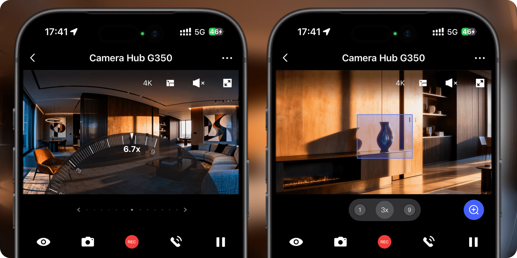 4K Ultra HD Dual-Lens Camera & 9X Hybrid Zoom: The G350 features a dual-camera system that captures every detail. A 133° wide-angle 4K lens and 2.5K HD telephoto lens combines to deliver sweeping panoramic views and zoomed details. With 9X hybrid zoom, you can magnify specific areas without losing clarity using fixed tap shortcut, zoom dial, dragbox or finger spread. The f/1.6 large aperture and 940nm invisible infrared LEDs ensure clear night vision with no conspicuous red glow.